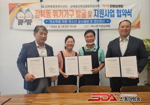[½Åµ¿¾Æ¹æ¼Û=À̽ŵ¿±âÀÚ]Áö³­ 8¿ù 14ÀÏ, °¨ºÏµ¿ ÇàÁ¤º¹Áö¼¾ÅÍ(µ¿Àå À̹®Ç¥)¡¤°¨ºÏµ¿ Áö¿ª»çȸº¸ÀåÇùÀÇü(À§¿øÀå ¹ÚÀα¤)´Â Çã´Ï¹® Çѹæ»ï°èÅÁ(´ëÇ¥ ±è¿ë¹ü¡¤±èÀοÁ)°ú À§±â°¡±¸ ¹ß±¼ ¹× Áö¿øÀ» À§ÇÑ ¾÷¹«Çù¾àÀ» ü°áÇß´Ù.