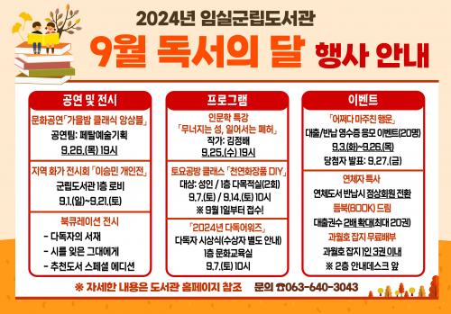ÀӽDZº¸³µµ¼­°ü, 9¿ù µ¶¼­ÀÇ ´Þ ¹®È­Çà»ç ¿î¿µ