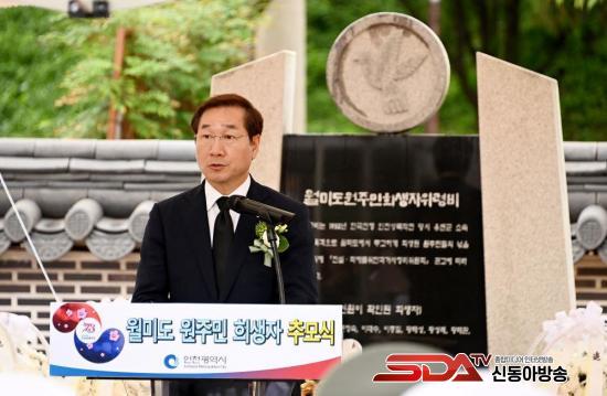 »çÁø=À¯Á¤º¹ ÀÎõ±¤¿ª½ÃÀåÀÌ 2023³â 9¿ù 15ÀÏ Áß±¸ ¿ù¹Ì°ø¿ø ¿ù¹Ìµµ ¿øÁֹΠÈñ»ýÀÚ À§·Éºñ¿¡¼­ ¿­¸° '¿ù¹Ìµµ ¿øÁֹΠÈñ»ýÀÚ Ã߸ð½Ä'¿¡¼­ Ã߸ð»ç¸¦ Çϰí ÀÖ´Ù.