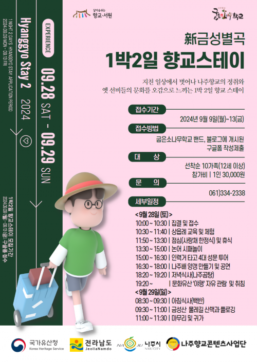 À̹ø ³ªÁÖÇâ±³ ½ºÅ×ÀÌ´Â ±¹°¡À¯»êû Çâ±³‧¼¿ø ¹®ÈÀ¯»ê Ȱ¿ë»ç¾÷À¸·Î Á¶¼± ¼ºÁ¾ 11³â(1480), ³ªÁÖÇâ±³ ¹Ú¼º°Ç ±³¼ö°¡ °¡¸£ÃÆ´ø Á¦ÀÚ 10ÀÎÀÌ ¼Ò°ú¿¡ ±ÞÁ¦ÇÏÀÚ ±× °¨°ÝÀ» ÀÚ¶ûÇÑ ±Ý¼ºº°°îÀ» Åä´ë·Î ±âȹµÆ´Ù.