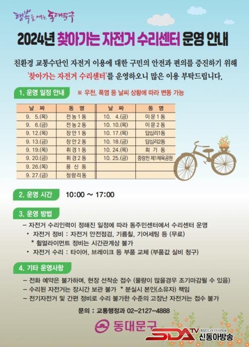 ÀÌÇÊÇü µ¿´ë¹®±¸Ã»ÀåÀº ¡°ÁֹεéÀÌ °¡±î¿î °÷¿¡¼ ¼Õ½±°Ô ÀÚÀü°Å Á¡°Ë°ú ¼ö¸® ¼ºñ½º¸¦ ¹ÞÀ» ¼ö ÀÖµµ·Ï ã¾Æ°¡´Â ¼ö¸®¼¾Å͸¦ ¿î¿µÇÏ°Ô µÆ´Ù¡±¸ç ¡°ÀÚÀü°Å Á¡°Ë°ú ¼ö¸®°¡ ÇÊ¿äÇÑ ÁֹεéÀÇ ¸¹Àº ÀÌ¿ë ¹Ù¶õ´Ù¡±°í ¸»Çß´Ù.