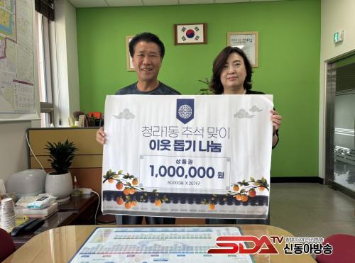 [½Åµ¿¾Æ¹æ¼Û ÀÎõ= À±¹Î½Ä±âÀÚ] û¶ó1µ¿ Áö¿ª»çȸº¸ÀåÇùÀÇü(¹Î°£À§¿øÀå Á¤°æ¿ë, °ø°øÀ§¿øÀå °­¹Ì¾Ö)´Â 10ÀÏ Ãß¼® ¸íÀýÀ» ¸ÂÀÌÇÏ¿© °ü³» Àú¼Òµæ °¡Á¤ ¹× Ãë¾à °¡±¸ ´ë»óÀ¸·Î 100¸¸¿ø »ó´çÀÇ Ãß¼® ¸ÂÀÌ »óǰ±ÇÀ» Àü´ÞÇß´Ù.