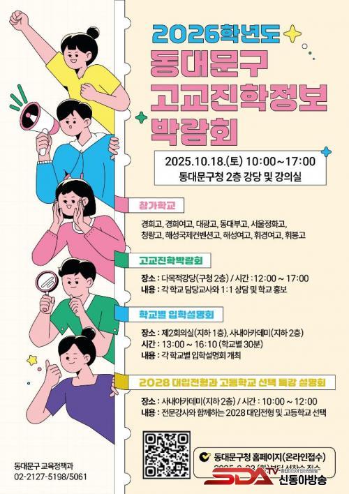 [½Åµ¿¾Æ¹æ¼Û µ¿´ë¹®±¸=À̽ŵ¿±âÀÚ] ¼­¿ï µ¿´ë¹®±¸´Â ¿À´Â 10¿ù 18ÀÏ(Åä) ¿ÀÀü 10½ÃºÎÅÍ ¿ÀÈÄ 5½Ã±îÁö ±¸Ã» ³» ´Ù¸ñÀû °­´ç, Á¦2ȸÀǽÇ, »ç³»¾ÆÄ«µ¥¹Ì¿¡¼­¡¸2026Çг⵵ °í±³ ÁøÇÐÁ¤º¸ ¹Ú¶÷ȸ¡¹¸¦ °³ÃÖÇÑ´Ù°í ¹àÇû´Ù.