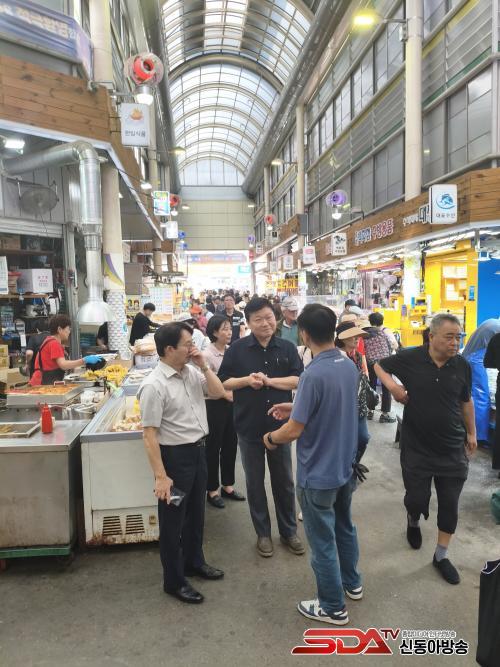 ¹Ú½Â»ï ºÎ½ÃÀåÀÌ »ï¹Ì½ÃÀåÀ» ¹æ¹®ÇØ ½ÃÀå »óÀεéÀ» °Ý·ÁÇϰí ÀÖ´Ù.