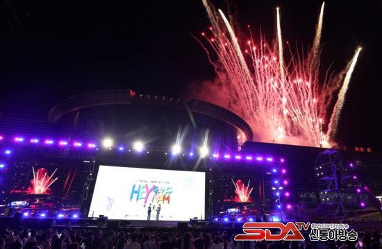 ¼öõ ¸íÀÇ °ü°´ÀÌ ÀÀ¿øºÀÀ» Èçµé¸ç ¿­±â¿¡ ÀÀ´äÇß°í, ¹«´ë À§ Á¶¸í°ú ´ëÇü LED ½ºÅ©¸°, ¹ãÇÏ´ÃÀ» ¼ö³õÀº ºÒ²É³îÀ̰¡ ¾î¿ì·¯Á® ÃàÁ¦ ºÐÀ§±â¸¦ ÀýÁ¤À¸·Î ²ø¾î¿Ã·È´Ù
