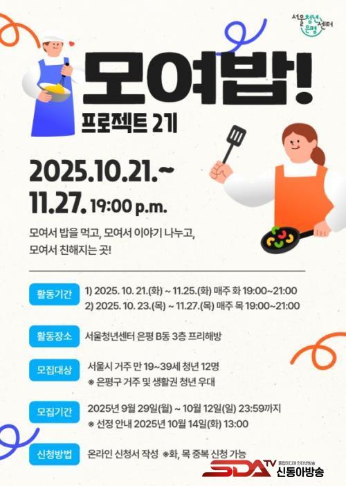 [½Åµ¿¾Æ¹æ¼Û ÀºÆò±¸=À̽ŵ¿±âÀÚ] ¼­¿ï ÀºÆò±¸´Â ¼­¿ïû³â¼¾ÅÍ ÀºÆòÀÌ ¿ä¸®¿Í ºÀ»ç¸¦ °áÇÕÇÑ Ã»³â Ä¿¹Â´ÏƼ ÇÁ·Î±×·¥ ¡®¸ð¿©¹ä¡¯ÀÇ 2±â Âü¿© û³âÀ» ¿À´Â 12ÀϱîÁö ¸ðÁýÇÑ´Ù°í ¹àÇû´Ù.