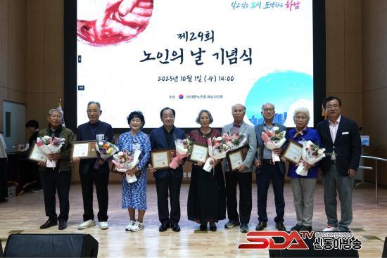 1ÀÏ ¹Ì»ç³ëÀκ¹Áö°ü¿¡¼­ ¿­¸° Á¦29ȸ ³ëÀÎÀÇ ³¯ ±â³ä½Ä¿¡¼­ Áö¿ª»çȸ ¹ßÀü¿¡ ±â¿©ÇÑ ¸ð¹ü ¾î¸£½Å°ú ³ëÀκ¹Áö À¯°øÀÚ¿¡ ´ëÇÑ Ç¥Ã¢°ú ÇÔ²² ±â³äÃÔ¿µÀ» Çϰí ÀÖ´Ù.