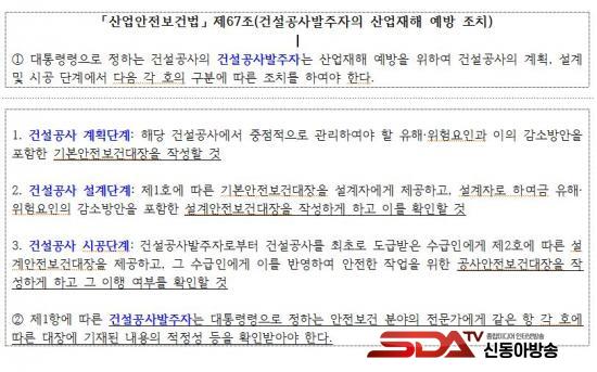¡à ¡¸»ê¾÷¾ÈÀüº¸°Ç¹ý¡¹ Á¦67Á¶¿¡ µû¶ó ÃÑ °ø»ç±Ý¾× 50¾ï ¿ø ÀÌ»ó °Ç¼³°ø»çÀÇ ¹ßÁÖÀÚ´Â °èȹ¡¤¼³°è¡¤½Ã°ø ´Ü°èº°·Î ¾ÈÀüº¸°Ç´ëÀåÀ» ÀÛ¼ºÇϰí, À̸¦ ¾ÈÀüº¸°Ç Àü¹®°¡¿¡°Ô ÀûÁ¤¼º °ËÁõÀ» ¹Þµµ·Ï Àǹ«È­Çϰí ÀÖ´Ù. ÀÌ´Â ´ëÇü °Ç¼³°ø»çÀÇ ¾ÈÀüÀ» ü°èÀûÀ¸·Î °ü¸®Çϱâ À§ÇÑ ÇÙ½É ÀåÄ¡´Ù.