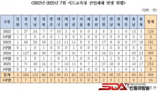 - 2022³â~2025³â ±³À°Ã» »ê¾÷ÀçÇØ 968°Ç ¹ß»ý, »ç¸ÁÀçÇØ¸¸ 24°Ç