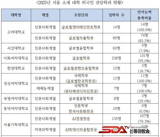 ¡à ¼¿ï ¼ÒÀç ´ëÇп¡¼µµ ¿Ü±¹ÀÎ Àü´ãÇаú ¿î¿µÀÌ È®ÀεƴÙ. 2025³â ±âÁØÀ¸·Î °í·Á´ë, ÀÌÈ¿©´ë µî ¼¿ï 11°³ ´ëÇп¡ ¿Ü±¹ÀÎ Àü´ãÇаú 16°³°¡ ¼³Ä¡µÆÀ¸¸ç, ÇØ´ç Çаú ÀÔÇлý 886¸í Áß ¾ð¾î´É·Â ±âÁØÀ» ÃæÁ·ÇÑ À¯ÇлýÀº 476¸í(53.7%)À¸·Î Áý°èµÆ´Ù.