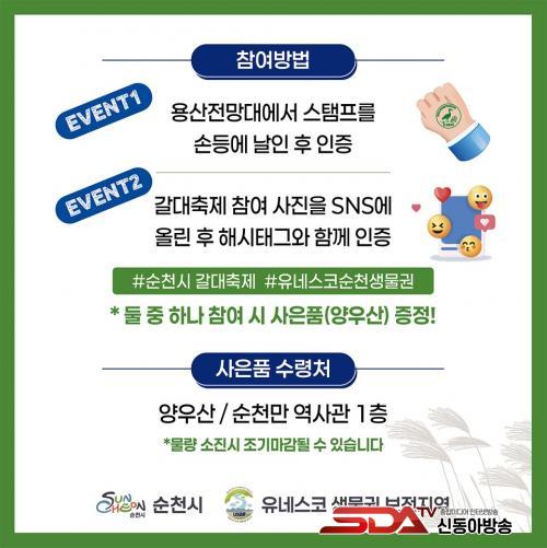µÎ ¹øÂ°´Â ¼øÃµ¸¸°¥´ëÃàÁ¦ ÇöÀå¿¡¼­ ÃÔ¿µÇÑ »çÁøÀ» #¼øÃµ¸¸°¥´ëÃàÁ¦, #À¯³×½ºÄÚ¼øÃµ»ý¹°±Ç µîÀÇ ÇØ½ÃÅÂ±×¿Í ÇÔ²² °³ÀÎ SNS¿¡ °Ô½Ã ÈÄ ¼øÃµ¸¸ ¿ª»ç°ü¿¡¼­ ÀÎÁõÇÏ¸é µÈ´Ù.