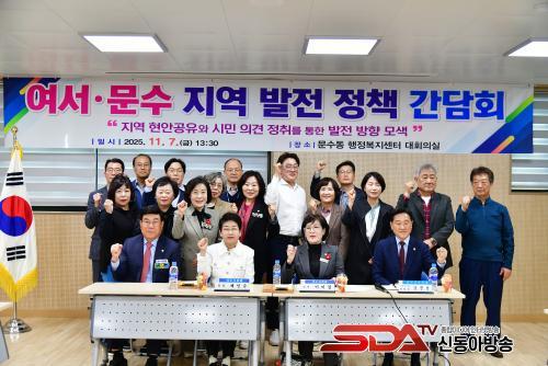 [½Åµ¿¾Æ¹æ¼Û ¿©¼ö=±è±â³² ±âÀÚ] ¿©¼ö½ÃÀÇȸ(ÀÇÀå ¹éÀμ÷)´Â Áö³­ 11¿ù 7ÀÏ ¹®¼öµ¿ ÇàÁ¤º¹Áö¼¾ÅÍ ´ëȸÀǽǿ¡¼­ ¡®¿©¼­‧¹®¼ö Áö¿ª ¹ßÀü Á¤Ã¥ °£´ãȸ¡¯¸¦ °³ÃÖÇß´Ù.