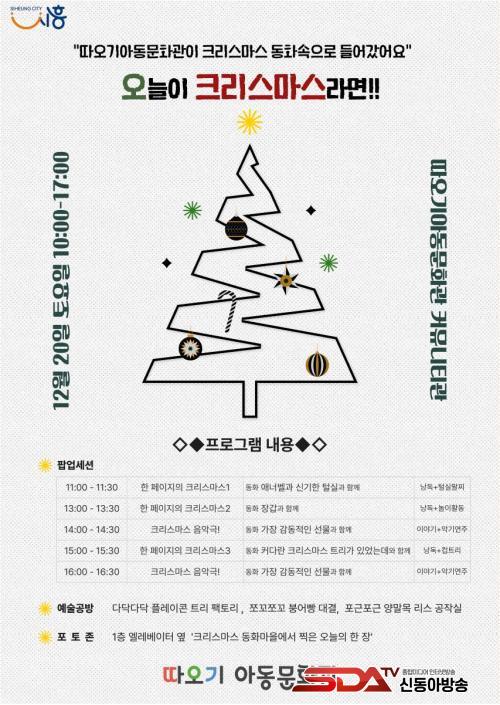 [½Åµ¿¾Æ¹æ¼Û ½ÃÈï½Ã=À̽ŵ¿±âÀÚ] ½ÃÈï½Ã µû¿À±â¾Æµ¿¹®È­°üÀÌ ¿À´Â 12¿ù 20ÀÏ Å©¸®½º¸¶½º ¹®È­Çà»ç ¡®¿À´ÃÀÌ Å©¸®½º¸¶½º¶ó¸é¡¯À» ¿¬´Ù. ¹Ý¦ÀÌ´Â Æ®¸®, ¼­´ÃÇÑ °Ü¿ï °ø±â, Ã¥ÀåÀ» ³Ñ±â´Â ¼Ò¸®°¡ Çѵ¥ ¾î¿ì·¯Áö¸ç ¹®È­°üÀº Àá½Ã ¡®À̾߱Ⱑ »ì¾Æ ¿òÁ÷ÀÌ´Â °ø°£¡¯À¸·Î º¯ÇÑ´Ù.
