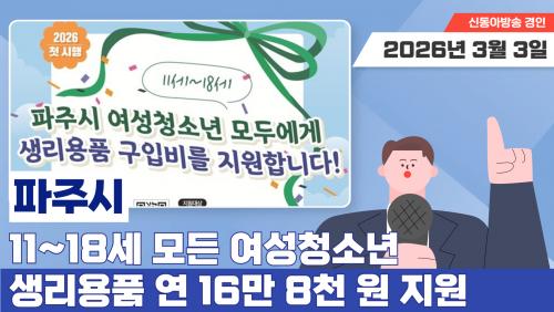 ÆÄÁֽð¡ ¿©¼ºÃ»¼Ò³âÀÇ °Ç°ÇÑ ¼ºÀå°ú º¹Áö ÁõÁøÀ» À§ÇØ ¡®2026³âµµ ¿©¼ºÃ»¼Ò³â »ý¸®¿ëǰ º¸Æí Áö¿ø »ç¾÷¡¯À» º»°Ý ½ÃÇàÇÑ´Ù. À̹ø »ç¾÷Àº ÆÄÁֽÿ¡ °ÅÁÖÇÏ´Â ¸¸ 11¼¼ºÎÅÍ 18¼¼ »çÀÌÀÇ ¿©¼ºÃ»¼Ò³â Àüü¸¦ ´ë»óÀ¸·Î Çϸç, ¿¬°£ ÃÖ´ë 16¸¸ 8,000¿øÀÇ Áö¿ø±ÝÀ» Áö±ÞÇÏ´Â °ÍÀÌ ÇÙ½ÉÀÌ´Ù.