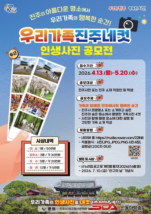 [½Åµ¿¾Æ¹æ¼Û °æ³²ÁøÁÖ=±è¸í¼ö±âÀÚ] ÁøÁֽô °¡Á·°ú ÇÔ²²ÇÑ ÀÏ»ó ¼Ó ÇູÇÑ ¼ø°£À» °øÀ¯ÇÏ°í °¡Á· ģȭÀû °¡Ä¡¸¦ È®»êÇϸç Áö¿ª¿¡ ´ëÇÑ ¾ÖÇâ½ÉÀ» ³ôÀ̱â À§ÇØ 2026³â Àα¸Á¤Ã¥ ¡¸¿ì¸® °¡Á· ÁøÁÖ ³× ÄÆ¡¹ Àλý»çÁø °ø¸ðÀüÀ» °³ÃÖÇÑ´Ù.