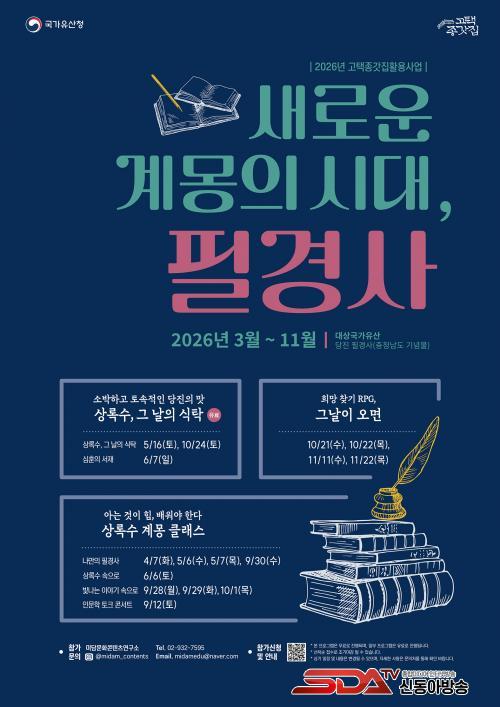 ¡®»õ·Î¿î °è¸ùÀÇ ½Ã´ë, Çʰæ»ç¡¯´Â ½ÉÈÆ ¹®ÇÐÀÇ »ê½ÇÀÎ Çʰæ»ç¿¡¼ ¡â»ó·Ï¼ö, ±×³¯ÀÇ ½ÄŹ(3ȸ), ¡â»ó·Ï¼ö °è¸ù Ŭ·¡½º(9ȸ), ¡âÈñ¸Áã±â RPG, ±×³¯ÀÌ ¿À¸é(4ȸ) µî 3°¡Áö ÁÖÁ¦·Î ÁøÇàµÉ ¿¹Á¤ÀÌ´Ù.