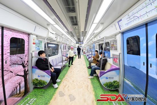Çϳ²½Ã´Â º¢²É °³È±â¸¦ ¸Â¾Æ ÁöÇÏö 5È£¼± Àüµ¿Â÷ ³»ºÎ¸¦ Çϳ²ÀÇ ¾Æ¸§´Ù¿î ¸í¼Ò·Î °¡µæ ä¿î ¡®Çϳ² dz°æ¿Â÷¡¯¸¦ ¼±º¸ÀÌ¸ç ½Ã¹ÎµéÀÇ ÀÏ»ó¿¡ µû½ºÇÑ ¿Â±â¸¦ ´õÇϰí ÀÖ´Ù.