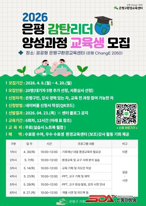 [½Åµ¿¾Æ¹æ¼Û ÀºÆò±¸=À̽ŵ¿±âÀÚ] ¼­¿ï ÀºÆò±¸´Â ¿À´Â 20ÀϱîÁö ÀºÆò±¸ ȯ°æ±³À°¼¾ÅÍ(ÀºÆò ChangE 2050)¸¦ °ÅÁ¡À¸·Î ±âÈÄ À§±â ´ëÀÀ°ú ź¼ÒÁ߸³ ½ÇõÀ» À̲ø ¡®2026 ÀºÆò °¨Åº¸®´õ¡¯ ¾ç¼º°úÁ¤ ±³À°»ýÀ» ¸ðÁýÇÑ´Ù°í ¹àÇû´Ù.