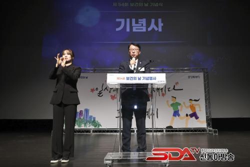 »çÁø=¼Û¹®È£ ±âȹÁ¶Á¤½ÇÀåÀÌ Á¦54ȸ º¸°ÇÀÇ ³¯ ±â³ä½Ä¿¡¼­ ±â³ä»ç¸¦ Çϰí ÀÖ´Ù
