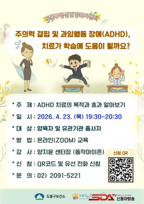 [½Åµ¿¾Æ¹æ¼Û µµºÀ±¸=À̽ŵ¿±âÀÚ] ¼­¿ï µµºÀ±¸°¡ ¿À´Â 4¿ù 23ÀÏ ¿ÀÈÄ 7½Ã 30ºÐ ¾Æµ¿‧û¼Ò³â º¸È£ÀÚ¿Í °ü°è ±â°ü Á¾»çÀÚ¸¦ ´ë»óÀ¸·Î ÁÖÀǷ°áÇÌ °úÀ×ÇൿÀå¾Ö(ADHD) ¿Â¶óÀÎ ±³À°(ZOOM)À» ÁøÇàÇÑ´Ù.