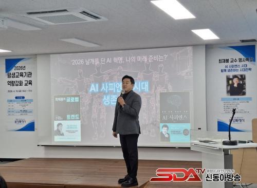 »çÁø=ÃÖÀçºØ ±³¼ö°¡ È­¼º½Ã¹Î´ëÇп¡¼­ ¿­¸° ¡®2026³â Æò»ý±³À°±â°ü ¿ª·®°­È­ ±³À°¡¯¿¡¼­ ¡®AI »çÇÇ¿£½º ½Ã´ë, ÇÔ²² »ýÁ¸ÇÏ´Â Àü·«¡¯À» ÁÖÁ¦·Î Ư°­À» Çϰí ÀÖ´Ù.