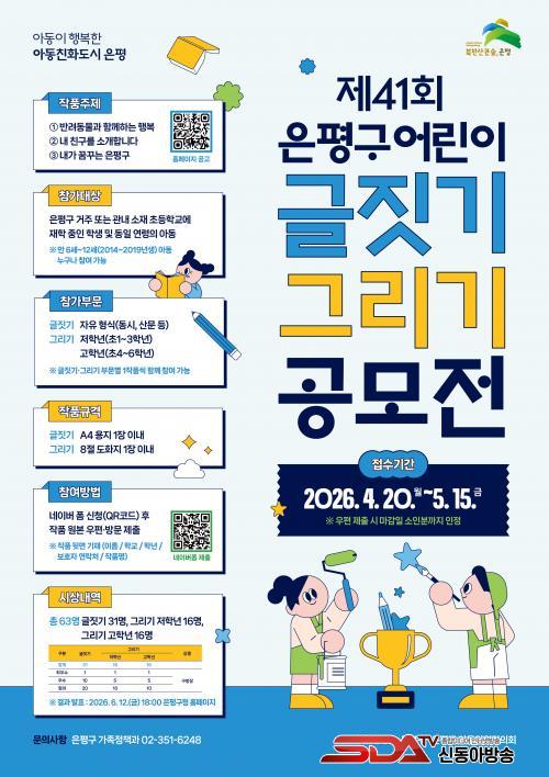 ¿ÃÇØ·Î 41ȸ¸¦ ¸ÂÀº À̹ø °ø¸ðÀüÀº ÀºÆò±¸¿Í ÀºÆò±¸ ¾Æµ¿À§¿øÇùÀÇȸ°¡ °øµ¿ ÁÖÃÖ¡¤ÁÖ°üÇϸç, ¾Æµ¿ÀÇ »ó»ó·Â°ú Ç¥Çö·ÂÀ» Ű¿ï ¼ö ÀÖµµ·Ï ¸¶·ÃµÆ´Ù.