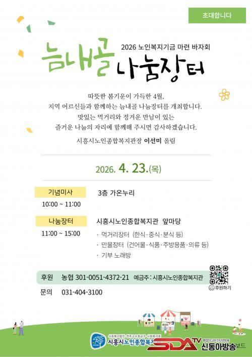 [½Åµ¿¾Æ¹æ¼Û ½ÃÈï½Ã=À̽ŵ¿±âÀÚ] ½ÃÈï½Ã³ëÀÎÁ¾ÇÕº¹Áö°ü(ÀÌÇÏ, ³ëÀκ¹Áö°ü)Àº ¿À´Â 4¿ù 23ÀÏ ¿ÀÀü 10½ÃºÎÅÍ Áö¿ª ¾î¸£½Å°ú ÁÖ¹ÎÀÌ ÇÔ²² ¾î¿ì·¯Áö´Â ³ª´®ÀÇ Àå ¡®´Æ³»°ñ ³ª´®ÀåÅÍ¡¯¸¦ ³ëÀκ¹Áö°ü ¾Õ¸¶´ç¿¡¼­ °³ÃÖÇÑ´Ù.