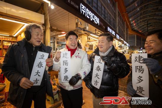 | | ÀÌÇÊÇü µ¿´ë¹®±¸Ã»ÀåÀÌ 3ÀÏ Ã»·®¸®¡¤°æµ¿½ÃÀåÀ» ¹æ¹®ÇÏ¿© »óÀεé°ú ¡®ÀÔÃá´ë±æ °Ç¾ç´Ù°æ(Ø¡õðÓÞÑÎ ËïåÕÒýÌÔ)¡¯À̶ó ÀûÈù Á¾À̸¦ ÇÔ²² µé¾î º¸À̸ç ȯÇÏ°Ô ¿ô°í ÀÖ´Ù. |