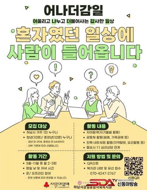 Çϳ²½Ã°¨ÀÏÁ¾ÇÕ»çȸº¹Áö°ü, 1ÀÎ °¡±¸ »çȸÀû °ü°è¸Á Çü¼º ÇÁ·Î±×·¥ ¡¸¾î³ª´õ °¨ÀÏ(¾î¿ï¸®°í ³ª´©°í ´õºÒ¾î»ç´Â °¨»çÇÑÀÏ»ó)¡¹ Âü¿©ÀÚ ¸ðÁý