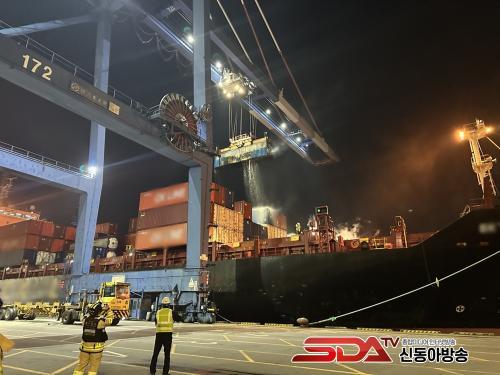 ½¡ÀÌ ÀûÀçµÈ ÄÁÅ×À̳ʿ¡ 1°³¿¡¼ ÀÚ¿¬¹ßÈ·Î ¿¬±â°¡ ÇǾî¿Ã¶úÀ¸³ª Å« ÈÀç°¡ ¹ß»ýÇÏÁø ¾Ê¾ÒÀ¸¸ç, ¿©¼öÇØ°æÀº °Å¹®µµ ÀÎ±Ù ÇØ»ó¿¡¼ºÎÅÍ °æºñÇÔÁ¤À» µ¿¿øÇØ ±¤¾çÇ× ÄÁÅ×À̳ʺεαîÁö ¾ÈÀü°ü¸®¸¦ ½Ç½ÃÇß´Ù.