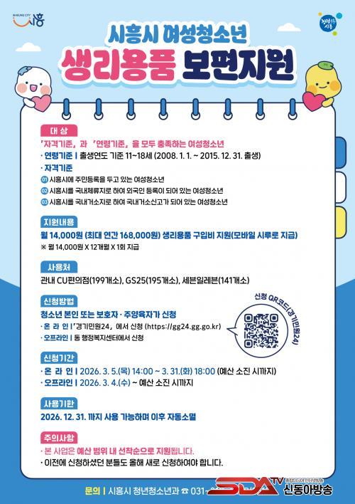 ½ÃÈï½Ã, ¿©¼ºÃ»¼Ò³â »ý¸®¿ëǰ º¸ÆíÁö¿ø ½Åû °³½Ã
