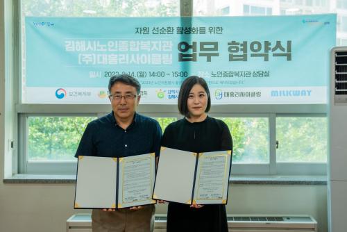 [½Åµ¿¾Æ¹æ¼Û´º½º=ÃÖ¼ÛÈ­±âÀÚ] (Àç)±èÇØ½Ãº¹ÁöÀç´Ü(´ëÇ¥ÀÌ»ç ÃÖÁ¤±Ô) ±èÇØ½Ã³ëÀÎÁ¾ÇÕº¹Áö°ü(°üÀå ½É¿ì¿µ)°ú ¢ß´ëÈ︮»çÀÌŬ¸µ(´ëÇ¥ ¹ÚÇý¶õ)Àº 14ÀÏ ÀÚ¿ø ¼±¼øÈ¯ Ȱ¼ºÈ­¸¦ À§ÇÑ ¾÷¹« Çù¾àÀ» ü°áÇß´Ù. ±èÇØ½Ã³ëÀÎÁ¾ÇÕº¹Áö°üÀº Áö³­ 4¿ùºÎÅÍ ¸®»çÀÌŬ ½Ã´Ï¾î ºÀ»ç´Ü¡¦