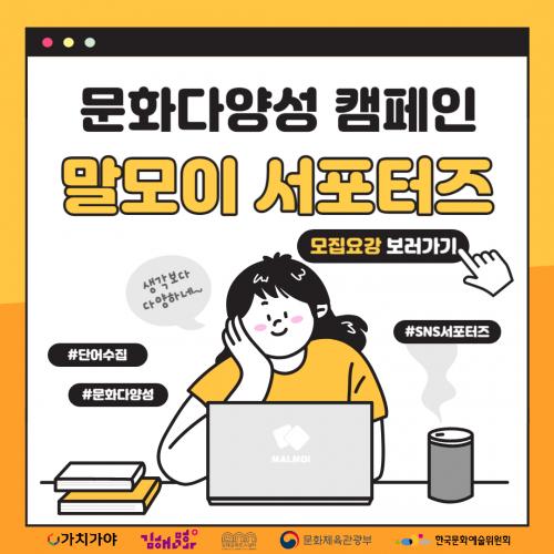 [½Åµ¿¾Æ¹æ¼Û´º½º=ÃÖ¼ÛÈ­±âÀÚ] ±èÇØ¹®È­Àç´Ü ¿µ»ó¹Ìµð¾î¼¾ÅͰ¡ ¹®È­´Ù¾ç¼º Ä·ÆäÀÎ ¡®¸»¸ðÀÌ¡¯ÀÇ ¼­Æ÷ÅÍÁ 31ÀÏ(¸ñ)±îÁö ¸ðÁýÇÑ´Ù. ¡®¸»¸ðÀÌ ¼­Æ÷ÅÍÁ´Â ¹®È­´Ù¾ç¼º Ä·ÆäÀÎ ¡®¸»¸ðÀÌ¡¯¿Í ÇÔ²² ¹®È­´Ù¾ç¼ºÀ» ÇØÄ¡´Â ´Ü¾î¸¦ ¹ß±¼․¼öÁýÇÏ°í ¹®È­´Ù¾ç¼º ÀÎ½Ä È®»ê¡¦