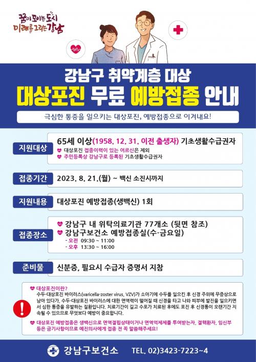 [½Åµ¿¾Æ¹æ¼Û °­³²=À̽ŵ¿±âÀÚ]°­³²±¸°¡ ¿À´Â 21ÀϺÎÅÍ 65¼¼ ÀÌ»ó ±âÃÊ»ýȰ¼ö±ÞÀÚ 3,500¸íÀ» ´ë»óÀ¸·Î ´ë»óÆ÷Áø ¹«·á ¿¹¹æÁ¢Á¾À» ½Ç½ÃÇÑ´Ù. ±¹¹Î°Ç°­º¸Çè°ø´Ü Åë°è¿¡ µû¸£¸é 2021³â ±âÁØ ´ë»óÆ÷Áø ȯÀÚ ¼ö´Â ¾à 72¸¸¸íÀ¸·Î ¿¬Æò±Õ 0.6% °¡·® ²ÙÁØÈ÷ Áõ°¡Çϰí ÀÖ´Ù. Ư¡¦