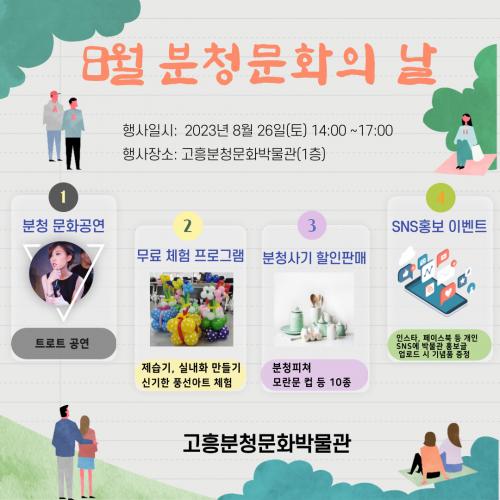 [½Åµ¿¾Æ¹æ¼Û=¹Ú±¤¿Á±âÀÚ] °íÈïºÐû¹®È­¹Ú¹°°ü(±º¼ö °ø¿µ¹Î)Àº ±º¹Î°ú ÇÔ²²ÇÏ´Â ¡®8¿ù ºÐû¹®È­ÀÇ ³¯ Çà»ç¡¯¸¦ ¿À´Â 26ÀÏ(¿ÀÈÄ 2½ÃºÎÅÍ 5½Ã±îÁö)¿¡ °³ÃÖÇÑ´Ù°í ¹àÇû´Ù. À̹ø Çà»ç´Â ¡®ºÐû¿¡¼­ Áñ±â´Â Æ®·ÎÆ®ÀÇ Ç⿬¡¯À̶ó´Â ÁÖÁ¦·Î ¡ã¹Ú¹°°ü ¹«·á °ü¶÷ ¡ãÆ®·ÎÆ® °ø¿¬¡¦