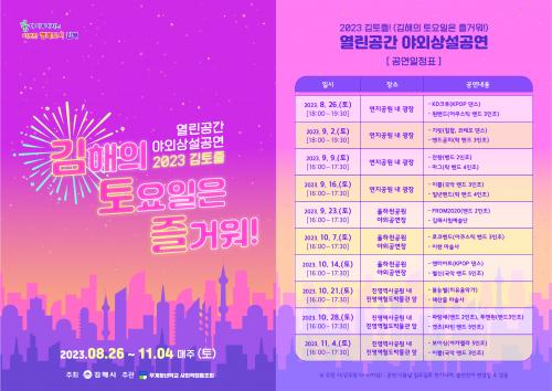 [½Åµ¿¾Æ¹æ¼Û´º½º=ÃÖ¼ÛÈ­±âÀÚ] ±èÇØ½Ã´Â ¿À´Â 26ÀϺÎÅÍ 11¿ù 4ÀϱîÁö 10ÁÖ°£ ¸ÅÁÖ Åä¿äÀÏ ±èÅäÁñ(±èÇØÀÇ Åä¿äÀÏÀº Áñ°Å¿ö!) ¿­¸°°ø°£ ¾ß¿Ü»ó¼³°ø¿¬À» °³ÃÖÇÑ´Ù°í ¹àÇû´Ù. ±èÅäÁñÀº ÀÎ±â ¾ÆÆ¼½ºÆ®µé°ú Áö¿ª ±â¹ÝÀÇ ¿¹¼úÀÎ °ø¿¬°úÀÇ Á¶È­·Î¿î ¹«´ë·Î ½Ã¹Îµé¿¡°Ô Áñ°Å¿î ¡¦
