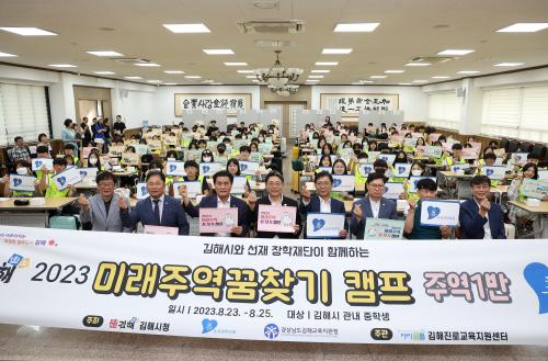 [½Åµ¿¾Æ¹æ¼Û´º½º=ÃÖ¼ÛÈ­±âÀÚ] ±èÇØ½Ã´Â 8¿ù 23ÀϺÎÅÍ 25ÀϱîÁö °ü³» ÁßÇлý 114¸íÀ» ´ë»óÀ¸·Î Áø·ÎŽ»öÄ·ÇÁ ½ÃÇà¿¡ ¸ÂÃç, 8¿ù 23ÀÏ ´çÀÏ ¿ÀÀü 7½Ã40ºÐ ±èÇØ»ó°øÈ¸ÀÇ¼Ò ´ëȸÀǽǿ¡¼­ 2023³â ¡®¹Ì·¡ÁÖ¿ª ²Þ ã±â¡¯ Áø·ÎŽ»öÄ·ÇÁ ¹ß´ë½ÄÀ» °³ÃÖÇß´Ù. ¹Ì·¡ÁÖ¿ª ²Þ ã±â¡¦