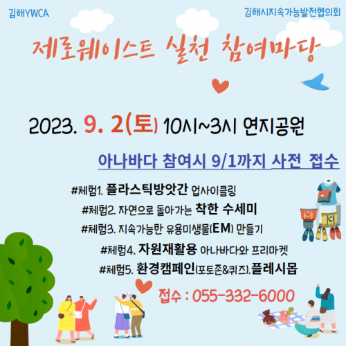 [½Åµ¿¾Æ¹æ¼Û´º½º=ÃÖ¼ÛÈ­±âÀÚ] ±èÇØ½Ã´Â ¿À´Â 9¿ù 2ÀÏ 10½ÃºÎÅÍ 3½Ã±îÁö ±èÇØ½Ã ³»µ¿ ¿¬Áö°ø¿ø(½Ã°èž ºÎ±Ù)¿¡¼­ Áö¼Ó°¡´É¹ßÀü ¡®Á¦·Î¿þÀ̽ºÆ® ½Çõ Âü¿© ¸¶´ç¡¯À» °³ÃÖÇÑ´Ù°í 30ÀÏ ¹àÇû´Ù. ±èÇØ½ÃÁö¼Ó°¡´É¹ßÀüÇùÀÇȸ °ø¸ð»ç¾÷ÀÇ ÀÏȯÀ¸·Î ±èÇØYWCA¿¡¼­ ÁÖ°üÇÏ´Â Á¦·Î¡¦