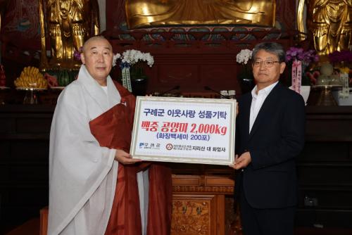 [½Åµ¿¾Æ¹æ¼Û=À±¼ºÁÖ ±âÀÚ] Àü³² ±¸·Ê±ºÀº 30ÀÏ ´ëÇѺұ³Á¶°èÁ¾ È­¾ö»ç¿¡¼­ °ü³» Àú¼Òµæ °¡Á¤À» À§ÇØ ¹é¹Ì 200Æ÷(10kg)¸¦ ±âŹÇß´Ù°í ¹àÇû´Ù. ´ëÇѺұ³Á¶°èÁ¾ È­¾ö»ç´Â ¹éÁßÀ» ¸Â¾Æ È­¾ö»ç ½ÅµµÈ¸¿Í ÇÔ²² Áö¿ªÀÇ ¾î·Á¿î ÀÌ¿ôÀ» À§ÇØ µû¶æÇÑ ³ª´®À» ½ÇõÇß´Ù. È­¾ö¡¦