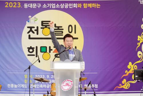 [½Åµ¿¾Æ¹æ¼Û µ¿´ë¹®=À̽ŵ¿±âÀÚ]ÀÌÇÊÇü µ¿´ë¹®±¸Ã»ÀåÀÌ 2ÀÏ ¿ÀÀü 10½ÃºÎÅÍ ±¸Ã» ¾Õ ¿ëµÎ±Ù¸°°ø¿ø¿¡¼­ ¿­¸° (»ç)µ¿´ë¹®±¸ ¼Ò±â¾÷¼Ò»ó°øÀÎȸ(ÀÌ»çÀå ±è¾çÈ£)°¡ ÁÖÃÖ¡¤ÁÖ°üÇÏ´Â ¡®¼Ò»ó°øÀÎ ÀüÅë³îÀÌ Èñ¸ÁÀåÅÍ¡¯¿¡ Âü¼®Çß´Ù. ÀÌ ±¸Ã»ÀåÀº °³È¸½Ä Ãà»ç¿¡ À̾î Çà»çÀå¿¡ ¼³¡¦