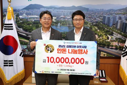 [½Åµ¿¾Æ¹æ¼Û´º½º=ÃÖ¼ÛÈ­±âÀÚ] ´ëÇÑÇѵ·Çùȸ ±èÇØ½ÃÁöºÎ(ÁöºÎÀå ±èÁøº¸)´Â 4ÀÏ ±èÇØ½ÃûÀ» ã¾Æ ¾î·Á¿î ÀÌ¿ôµé¿¡°Ô ÀüÇØ ´Þ¶ó¸ç µÅÁö°í±â 1,335kg(1õ¸¸¿ø »ó´ç)À» ±âŹÇß´Ù. ±âʹÞÀº µÅÁö°í±â´Â ¹«·á±Þ½Ä½Ã¼³À» ¿î¿µÇÏ´Â 31°³ »çȸº¹Áö½Ã¼³¿¡ Àü´ÞµÈ´Ù. ±èÁøº¸ Áö¡¦