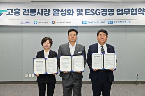 [½Åµ¿¾Æ¹æ¼Û=¹Ú±¤¿Á±âÀÚ] °íÈﱺ(±º¼ö °ø¿µ¹Î)Àº Áö³­ 6ÀÏ ±ºÃ» ÆÈ¿µ»êȦ¿¡¼­ °íÈïÀüÅë½ÃÀå Ȱ¼ºÈ­¿Í ESG °æ¿µÀ» ÁÖ¿ä °ñÀÚ·Î Çѱ¹È¯°æ°ø´Ü ±¤ÁÖÀü³²Á¦ÁÖȯ°æº»ºÎ, ¼Ò»ó°øÀνÃÀåÁøÈï°ø´Ü ±¤ÁÖÈ£³²Áö¿ªº»ºÎ¿Í 3ÀÚ°£ ¾÷¹«Çù¾àÀ» ü°áÇß´Ù. Çѱ¹È¯°æ°ø´ÜÀº ¼öÁú, ´ë±â,¡¦