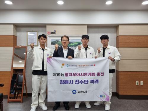 [½Åµ¿¾Æ¹æ¼Û´º½º=ÃÖ¼ÛÈ­±âÀÚ] ±èÇØ½Ã´Â Áö³­ 14ÀÏ Á¦19ȸ Ç×Àú¿ì ¾Æ½Ã¾È°ÔÀÓ¿¡ ÃâÀüÇÏ´Â ½ÃûÆÀ ¼Ò¼Ó ¼±¼ö´ÜÀ» ÃÊÃ»ÇØ °Ý·ÁÇß´Ù°í 15ÀÏ ¹àÇû´Ù. ÀÌ ÀÚ¸®¿¡´Â ¾Æ½Ã¾È°ÔÀÓ Âü°¡ ÇÏŰ ±¹°¡´ëÇ¥ ¼±¼ö·Î ¼±¹ßµÈ ¾çÁöÈÆ, Á¤ÁØ¿ì, °­¿µºó µîÀÌ Âü¼®ÇßÀ¸¸ç °³ÀÎ ÈÆ·Ã ÀÏÁ¤À¸¡¦