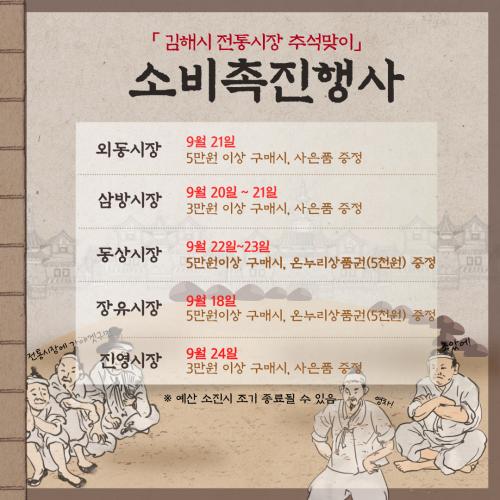 [½Åµ¿¾Æ¹æ¼Û´º½º=ÀÌÁ¶Àº ±âÀÚ] ±èÇØ½Ã´Â dz¼ºÇÑ ÇѰ¡À§¸¦ ¸Â¾Æ ¿À´Â 18ÀϺÎÅÍ 24ÀϱîÁö »çÀºÇ°°ú ÃÖ´ë 2¸¸¿ø±îÁö µ¹·Á¹Þ´Â ÆäÀ̹é Çà»ç¸¦ 5°³ ÀüÅë½ÃÀå¿¡¼­ ÁøÇàÇÑ´Ù°í 15ÀÏ ¹àÇû´Ù. ¸ÕÀú ÀåÀ¯½ÃÀå°ú µ¿»ó½ÃÀå¿¡¼­´Â 5¸¸¿ø ÀÌ»ó ±¸¸Å°í°´¿¡°Ô ¿Â´©¸®»óǰ±Ç 5õ¿ø±ÇÀ»¡¦