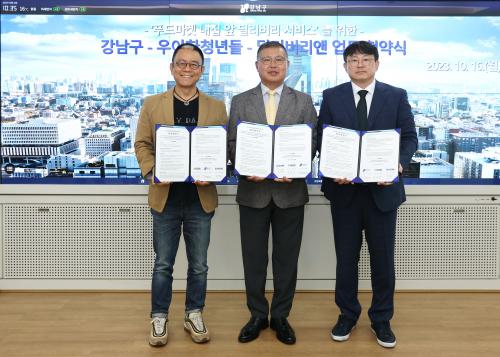 [½Åµ¿¾Æ¹æ¼Û °­³²=À̽ŵ¿±âÀÚ]°­³²±¸°¡ Áúº´, Àå¾Ö µîÀ¸·Î À̵¿ÀÌ ºÒÆíÇÑ 1ÀÎ Ãë¾à °¡±¸¿¡°Ô °­³²ÇªµåÁö¿ø¼¾ÅÍ ±âºÎ½Äǰ ¹× »ýÇÊǰÀ» ¹è´ÞÇÏ´Â ¼­ºñ½º¸¦ ÃßÁøÇϱâ À§ÇØ 16ÀÏ ±¸Ã»¿¡¼­ ¢ß¿ì¾ÆÇÑû³âµé, ¢ßµô¸®¹ö¸®¾Ø°ú ¾÷¹«Çù¾àÀ» ü°áÇß´Ù. °­³²ÇªµåÁö¿ø¼¾ÅÍ(ÀÏ¿øÁ¡¡¦