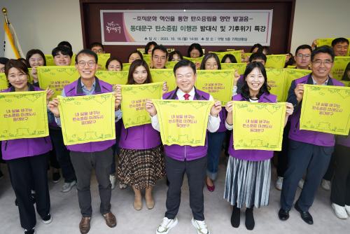 [½Åµ¿¾Æ¹æ¼Û µ¿´ë¹®=À̽ŵ¿±âÀÚ]µ¿´ë¹®±¸´Â 16ÀÏ ±¸Ã» 5Ãþ ±âȹ»óȲ½Ç¿¡¼­ ºÎ¼­ ´ëÇ¥ Á÷¿ø ¹× Á¦2±â µÎµå¸®¸Ó ź¼ÒÁ߸³ ºÐ°ú Á÷¿øÀ» ¡®µ¿´ë¹®±¸ ź¼ÒÁ߸³ ÀÌÇà°ü¡¯À¸·Î ÀÓ¸íÇÏ°í ¹ß´ë½ÄÀ» °³ÃÖÇÏ¿´´Ù. À̳¯ ¹ß´ë½ÄÀº °ø°ø±â°üÀÌ ¼±µµÀûÀ¸·Î ź¼ÒÁ߸³ ¸ñÇ¥¸¦ ÀÌÇØÇÏ°í¡¦