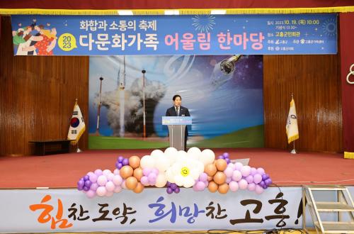 [½Åµ¿¾Æ¹æ¼Û=¹Ú±¤¿Á±âÀÚ] °íÈﱺ(±º¼ö °ø¿µ¹Î)Àº Áö³­ 19ÀÏ °íÈﱺ¹Îȸ°ü¿¡¼­ ±º¹Î°ú ´Ù¹®È­ °¡Á· µî 500¿© ¸íÀÌ Âü¼®ÇÑ °¡¿îµ¥ ¡®2023³â ´Ù¹®È­ °¡Á· ¾î¿ï¸² ÇѸ¶´ç¡¯À» °³ÃÖÇß´Ù. À̹ø Çà»ç´Â ǥâÆÐ ¼ö¿© ¹× ³ª¶óº° ³ë·¡ÀÚ¶û°ú È­ÇÕ ÇѸ¶´ç, ¼¼°è ÀÇ»ó üÇè, ¼Ò¹æ¡¦