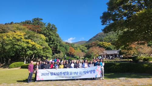 [½Åµ¿¾Æ¹æ¼Û ¿©¼ö=À̽ŵ¿±âÀÚ]Àü¶ó³²µµ±³À°Ã»(±³À°°¨ ±è´ëÁß)ÀÌ 10¿ù 21ÀÏ À̼ø½Å À屺ÀÇ ¾óÀÌ ¼­·Á ÀÖ´Â Áøµµ¿¡¼­ ´Ù¹®È­ °¡Á·°ú ÇÔ²²ÇÏ´Â ¡®³²µµ¹ÎÁÖÆòÈ­±æ(Àü³²ëù)¡¯À» ¿î¿µÇß´Ù. À̹ø ³²µµ¹ÎÁÖÆòÈ­±æÀº Áøµµ¿¡ °ÅÁÖÇÏ´Â ´Ù¹®È­°¡Á¤°ú ÀϹݰ¡Á¤ÀÌ ÇÔ²² ÁøµµÀÇ ¿ª»ç¡¦
