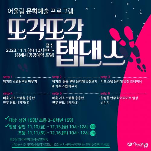 [½Åµ¿¾Æ¹æ¼Û´º½º=ÃÖ¼ÛÈ­±âÀÚ] ±èÇØ½Ã È­Á¤»ýȰ¹®È­¼¾ÅÍ ¾î¿ï¸²(ÀÌÇÏ ¾î¿ï¸²)Àº ¿À´Â 11¿ù 10ÀϺÎÅÍ 12¿ù 16ÀϱîÁö ¼ºÀΰú ÃʵîÇлýÀ» À§ÇÑ ¹®È­¿¹¼ú ÇÁ·Î±×·¥ ¡®¶Ç°¢¶Ç°¢ ÅÇ´í½º¡¯¸¦ ¿î¿µÇÑ´Ù°í 26ÀÏ ¹àÇû´Ù. ¡®¶Ç°¢¶Ç°¢ ÅÇ´í½º¡¯´Â ´ëÁß¼º°ú Àü¹®¼ºÀ» ±â¹ÝÀ¸·Î ÇÑ¡¦