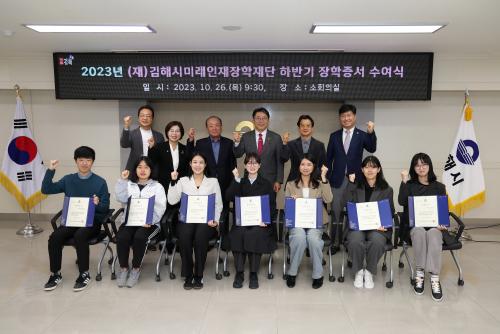 [½Åµ¿¾Æ¹æ¼Û´º½º=ÃÖ¼ÛÈ­±âÀÚ] ±èÇØ½Ã¹Ì·¡ÀÎÀçÀåÇÐÀç´Ü(ÀÌ»çÀå ÇöÁ¾¿ø)Àº 26ÀÏ ¿ÀÀü 9½Ã 30ºÐ ±èÇØ½Ãû ¼ÒȸÀǽǿ¡¼­ 2023³â ÇϹݱâ ÀåÇÐÁõ¼­ ¼ö¿©½ÄÀ» °³ÃÖÇß´Ù. Àç´ÜÀº Áö³­ 9¿ù 11ÀϺÎÅÍ 22ÀϱîÁö ÀåÇлý ½ÅûÀ» ¹Þ¾Æ 1Â÷ ¼­·ù½É»ç, 2Â÷ Àç´Ü ½ÉÀÇȸ¸¦ °ÅÃÄ ÃÖÁ¾ ¡¦